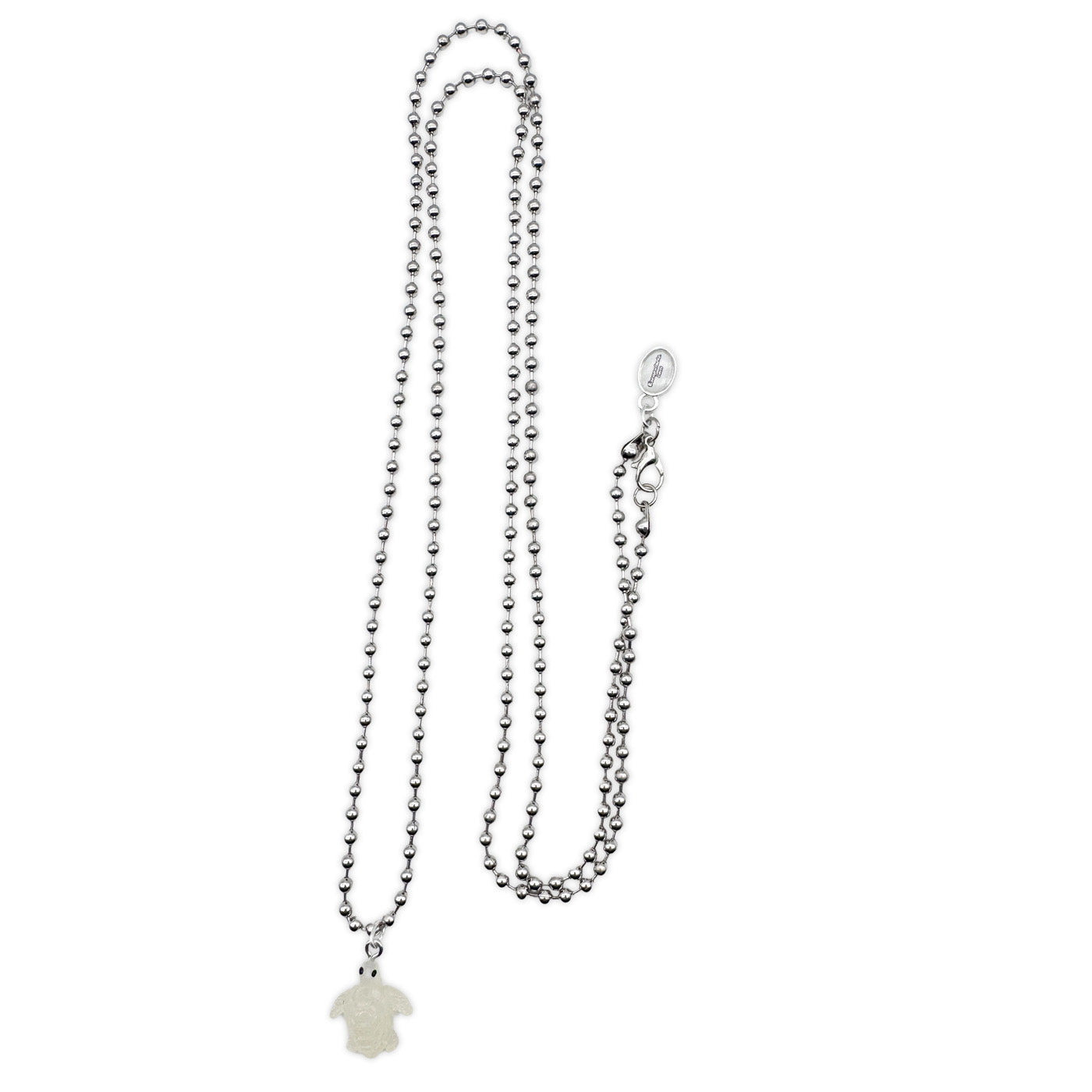 Kugelkette Metallic versilbert mit fluoreszierender transparenter Schildkröte aus Acryl