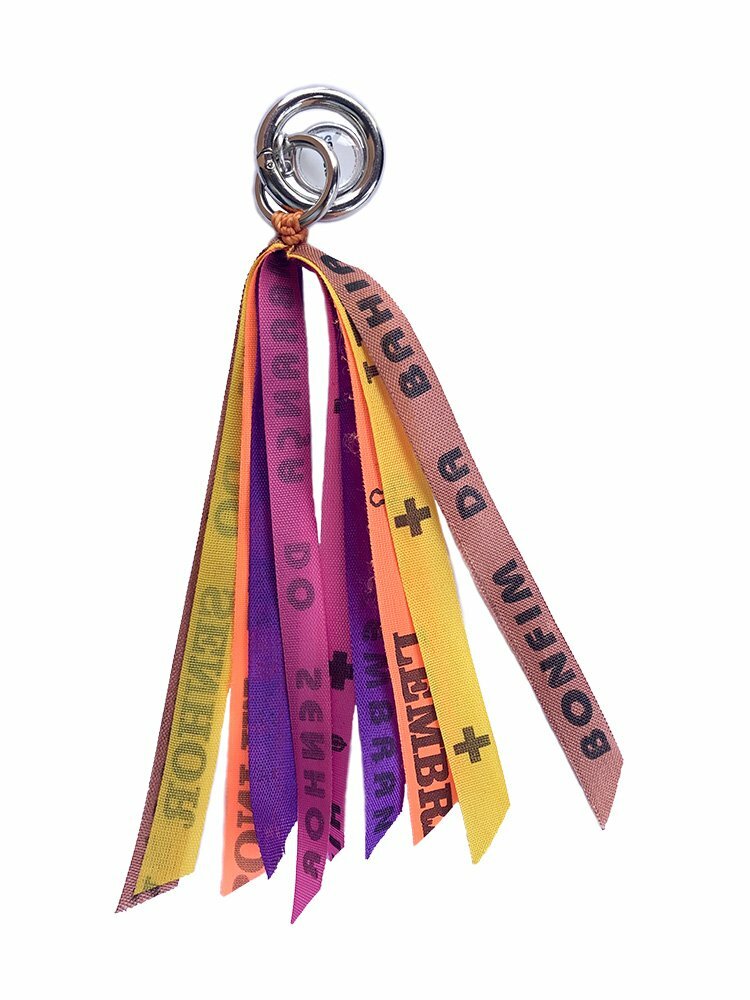 Der Escapulario Handy und Taschenanhänger von MO`BEADS passend zur Handykette. Der coole Anhänger besteht aus 5 verschiedenen neonfarbigen Bonfimbändchen in den Farben Beige, Rose, Gelb, Lila, Orange.