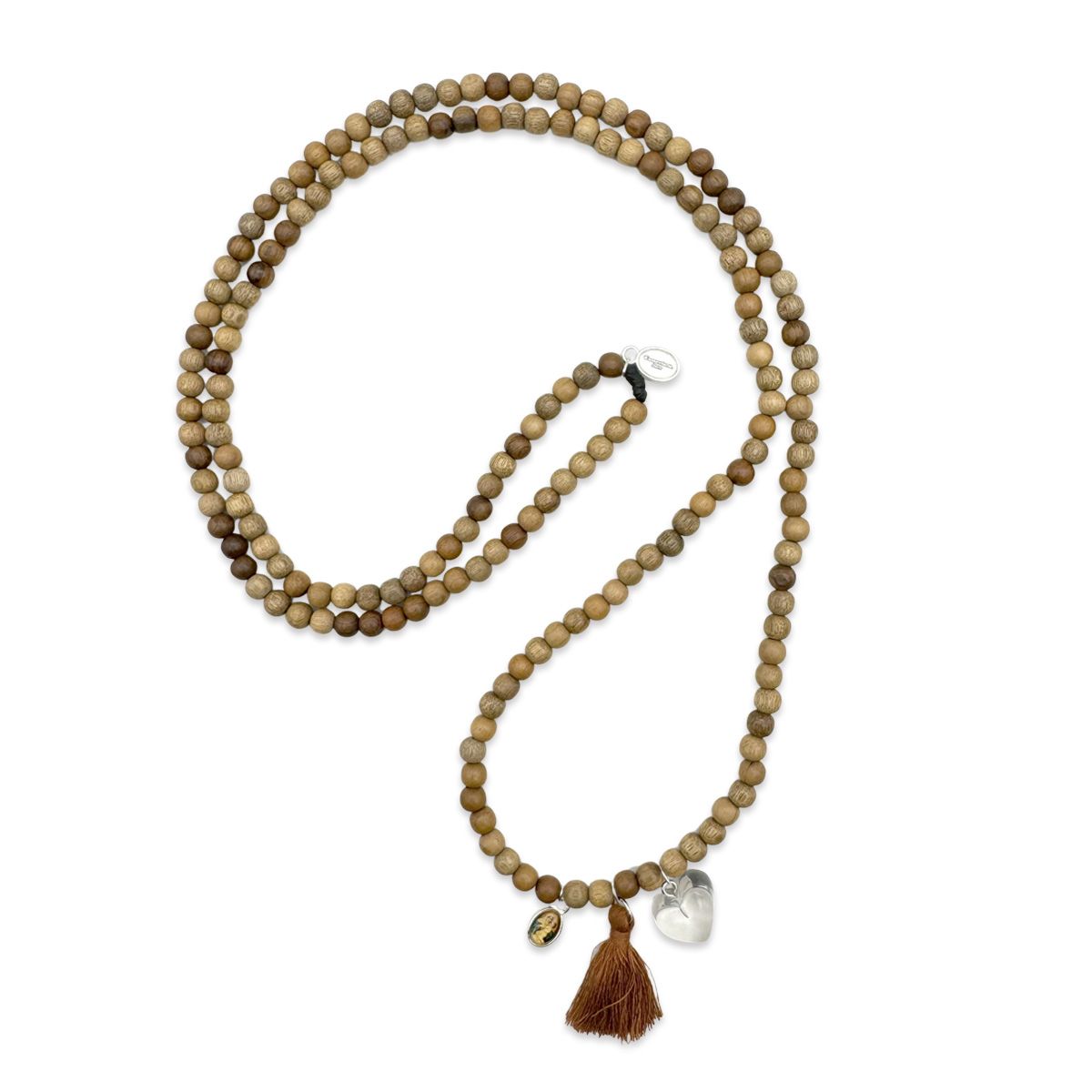 Entdecken Sie diese charmante Halskette im Escapulario-Stil, gefertigt aus 6mm Holzperlen in natürlichen Brauntönen, die Wärme und Natürlichkeit verkörpern. Ein transparenter Acrylherz-Anhänger und eine stilvolle braune Quaste verleihen dem Design eine elegante Note. Der Madonna-Anhänger rundet die Kette ab und verleiht ihr einen spirituellen Touch. Die Kettenlänge beträgt ca. 52 cm und sitzt getragen auf etwa 36 cm – perfekt, um jedem Outfit eine besondere Bedeutung und Stil zu verleihen.