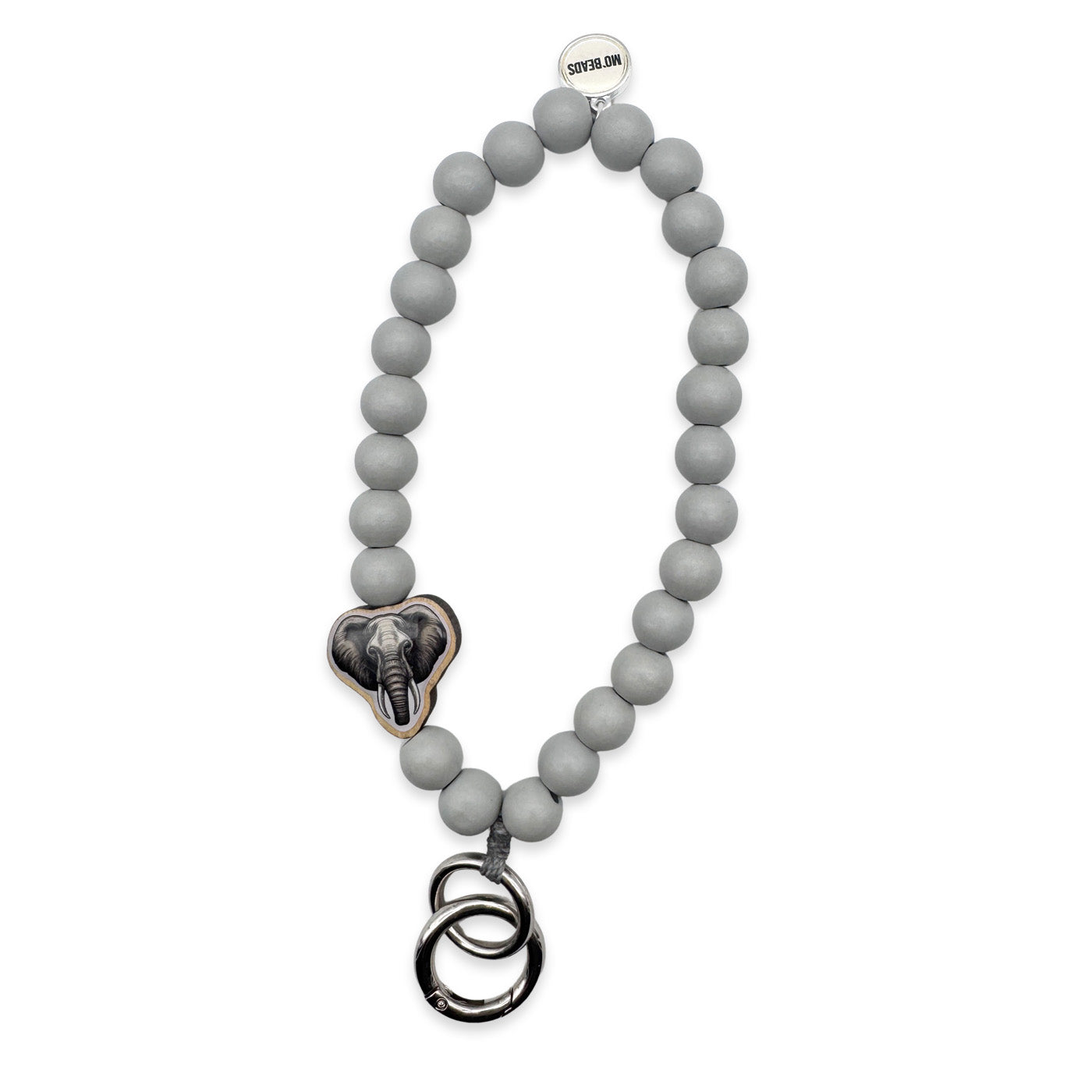 Schlüsselkette Hellgrau mit Holzpin Elefant