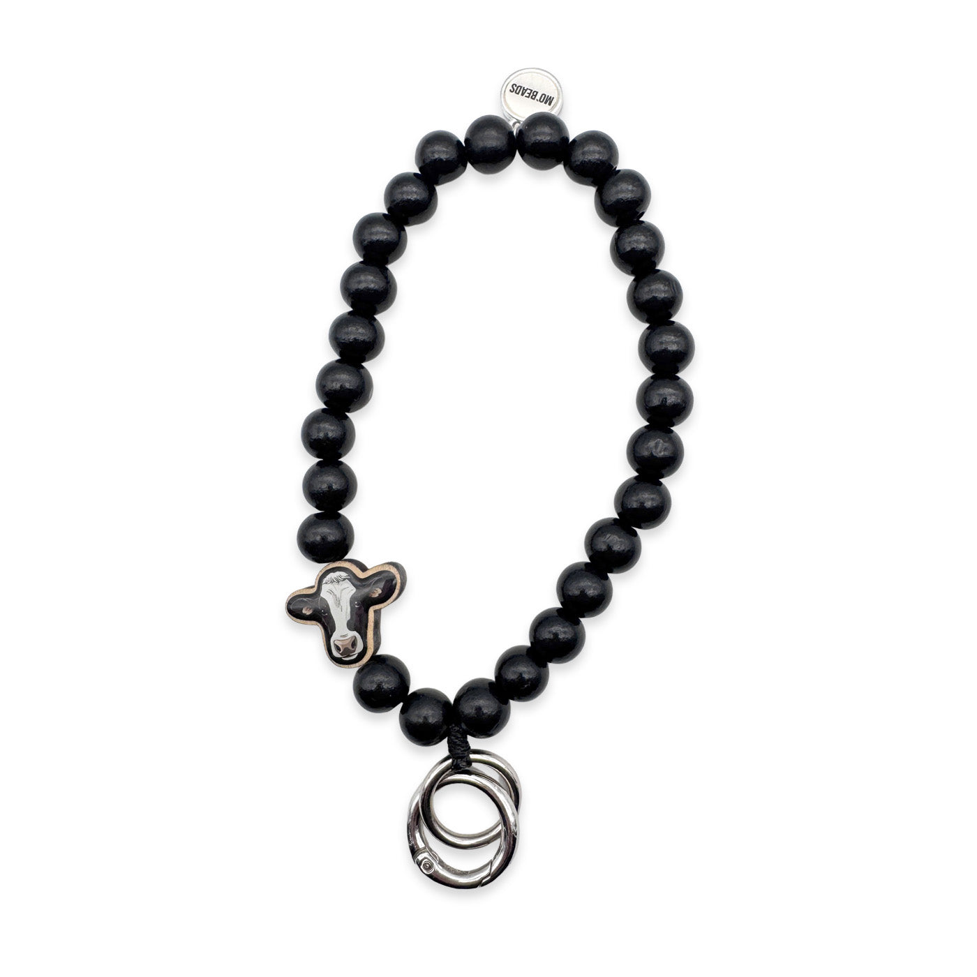 Schlüsselkette Schwarz mit Holzpin Kuh