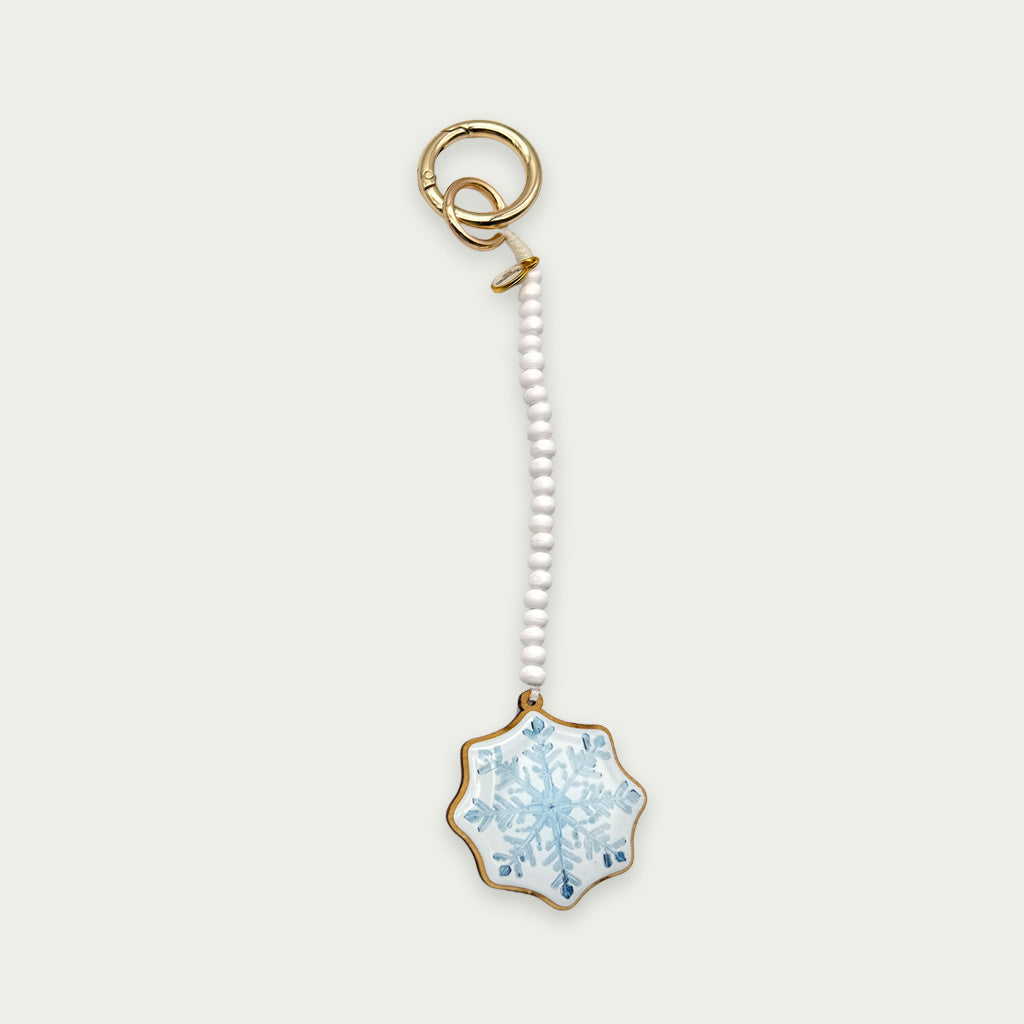 Verleihen Sie Ihrer Tasche einen einzigartigen Winterlook mit unserer Taschenkette aus bunten Holzperlen und einem lässigen Eiskristall Holzpin. Diese Kette, mit 6mm Holzperlen in Weiss ist ca. 17cm lang (Incl. Karabiner) und lässt sich auch toll als Schlüsselkette verwenden