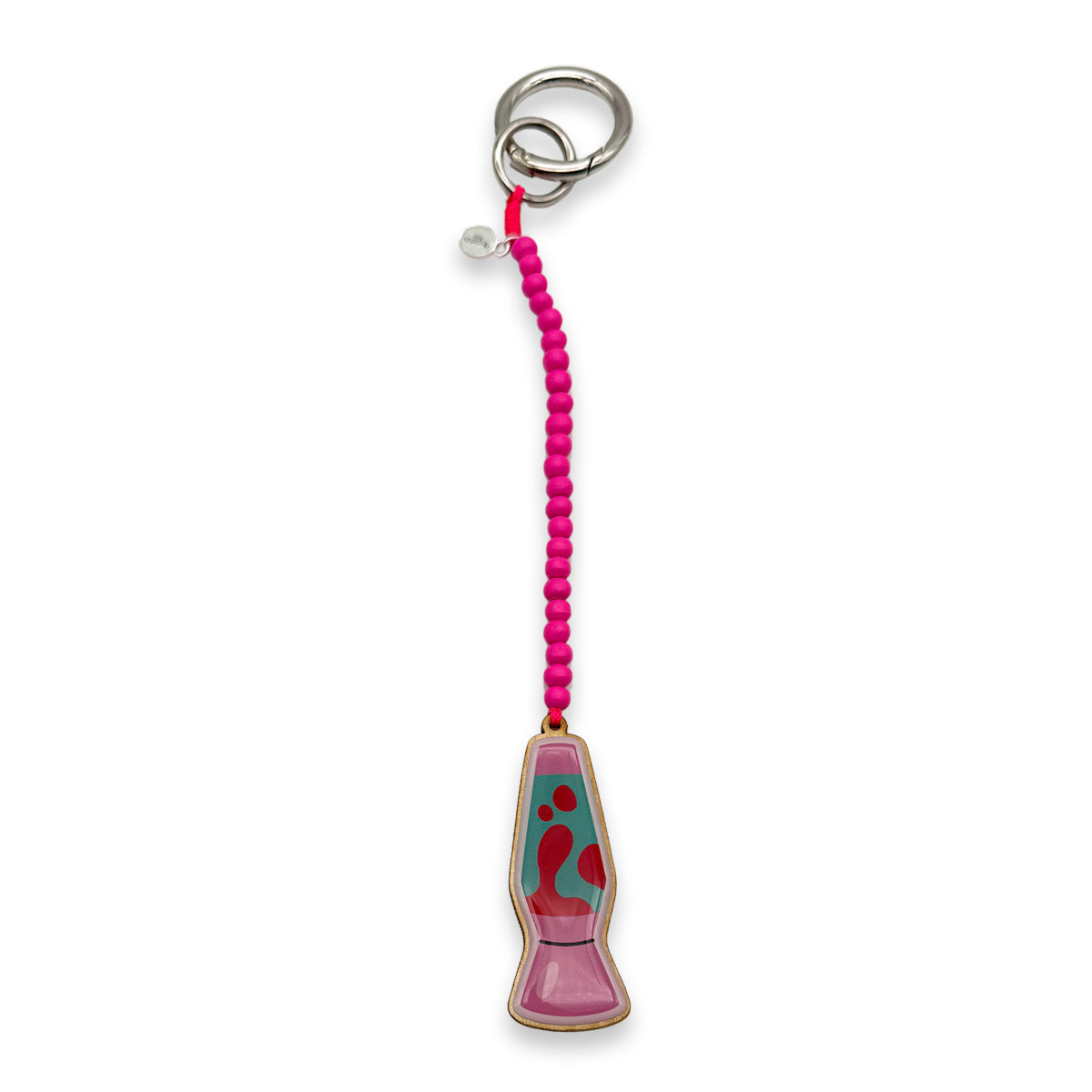 Verleihen Sie Ihrer Tasche einen einzigartigen Look mit unserer Taschenkette aus bunten Holzperlen und einem Lavalampen Holzpin. Diese Kette, mit 6mm Holzperlen in Pink ist ca. 17cm lang Incl. Karabiner und lässt sich auch toll als Schlüsselkette verwenden