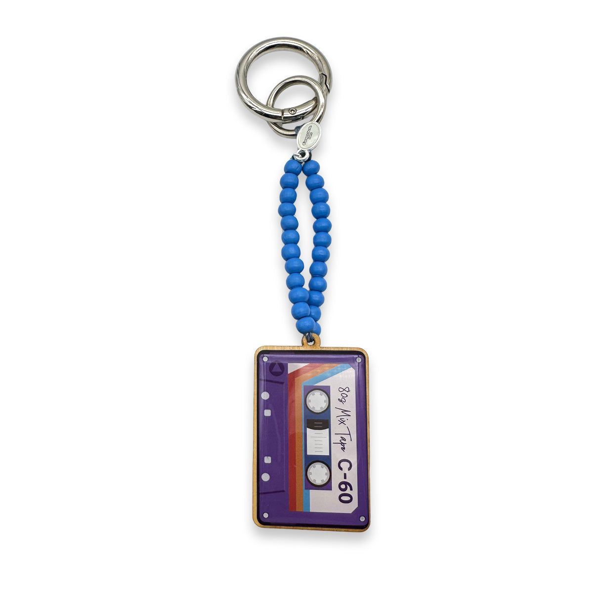 Verleihen Sie Ihrer Tasche einen einzigartigen Look mit unserer Taschenkette aus bunten Holzperlen und einem Retro Kassetten Holzpin. Diese Kette, mit 6mm Holzperlen in Jeansblau ist ca. 15cm lang Incl. Karabiner und lässt sich auch toll als Schlüsselkette verwenden