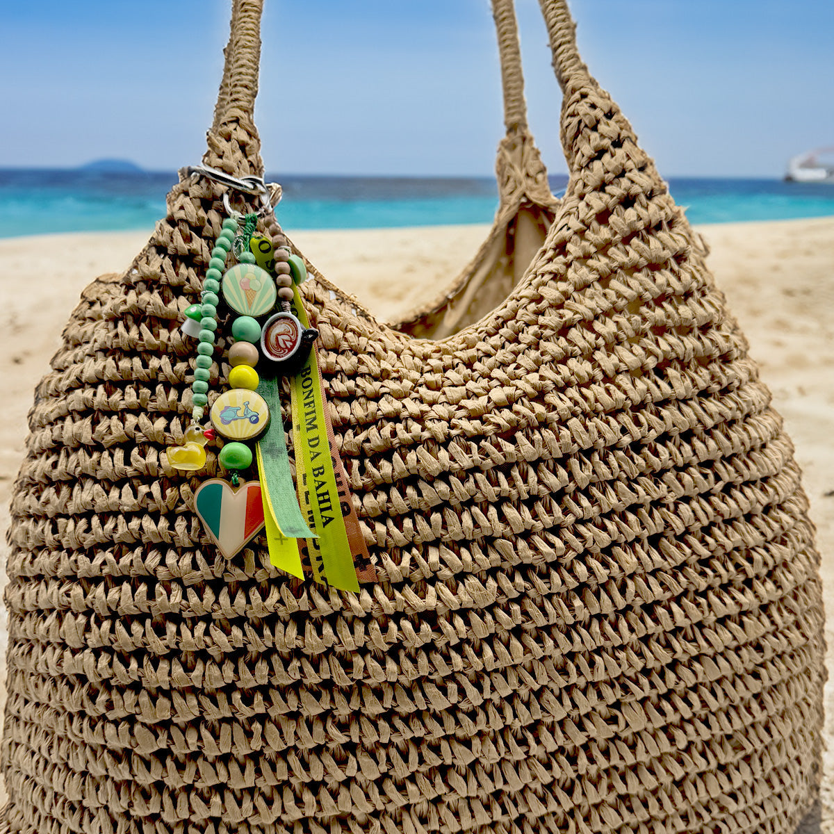 Tauche ein in die flotten Farben eines perfekten Sommertages! Der Happy Days Bagcharm ist eine verspielte Hommage an italienische Sommertage, knatternde Motoren und leckeres Eis. Befestigt an einem großen Karabinerring, bringt er die italienische Leichtigkeit an jede Tasche.